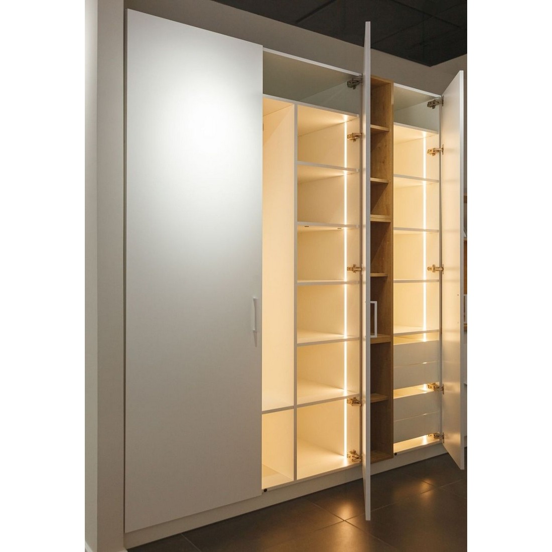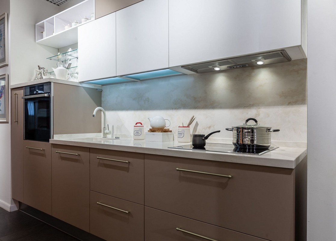 Для открывания фасадов Вы можете выбрать разные способы: лицевые ручки, торцевые ручки, профиль гола, интегрированные ручки, механизм Push to Open или за сам фасад при его увеличенной высоте.